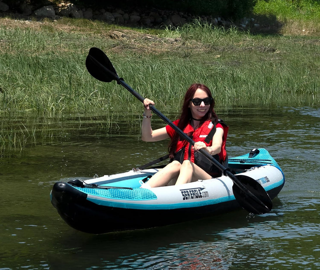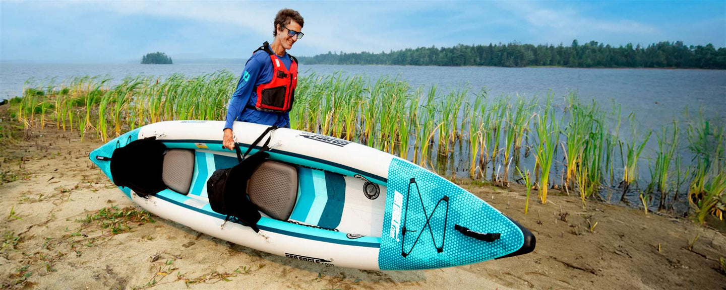 now has an attached (built-in) rigid high-pressure V-bottom woven drop-stitch floor for lighter weight (4 lbs. lighter than previous), greater rigidity, superior tracking, handling, and paddling performance. The entire length side-chines are more pronounced and track even better than before! This new floor makes packing up the FastTrack™ quicker, simpler, and less of a chore.