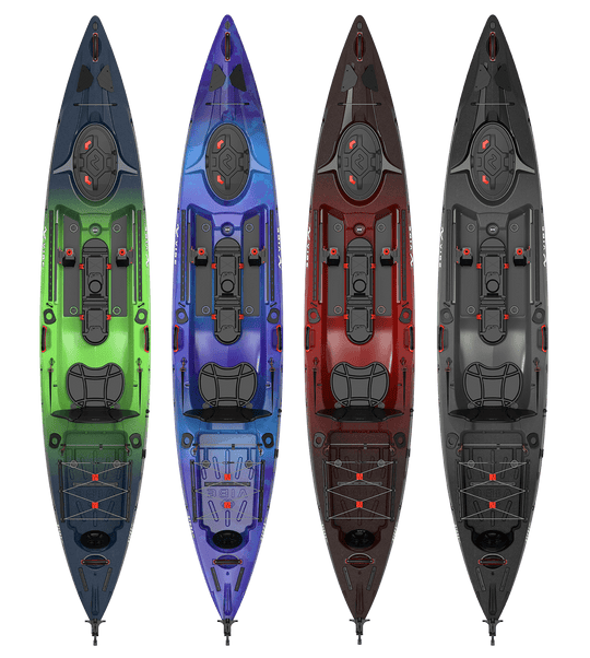 Sold out                                        Vendor: Vibe Kayaks Vibe Kayak-Hydra 130 No reviews+ 1 moreBecause your kayak should intimidate the fish — and your friends: Fast and stable — glides through open water, handles wind and chop like a champ Gear tracks, dual hatches, Power Pole mounts = full rigging...Regular price $949.99Regular price $949.99